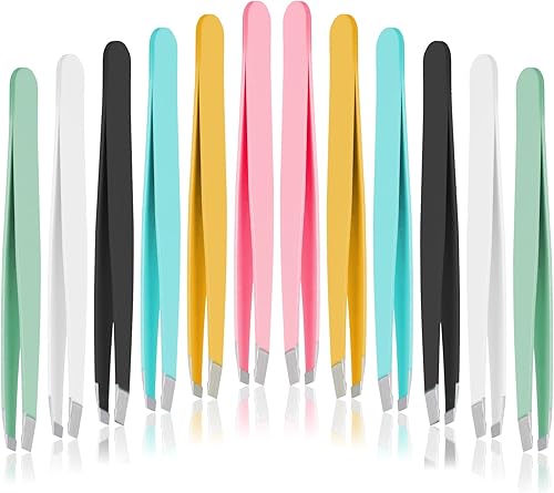 12 PCS Multicolor Eyebrow Tweezers Set - Slanted & Precision