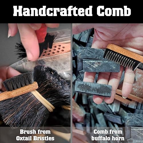 Beard Grooming Kit with Boar Bristle Brush & Comb Set