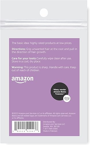 Amazon Basics Mini Tweezers 3-Pack - Black, White, Grey