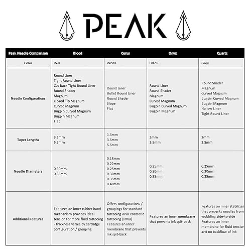 RIGOROUSLY TESTED AND STERILIZED: Peak tattoo supplies and equipment go through a rigorous, detailed testing process to weed out any defects and ensure each tattoo cartridge needle functions optimally