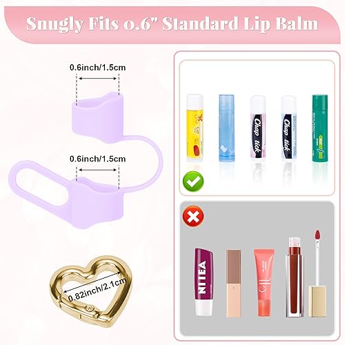 【Fit Standard Size Lip Balm】Designed with an inner diameter of 0.6 inches, this chapstick holder snugly fits all standard-sized lip balms. It's compatible with popular brands like Burt's Bee's, Chap'Stick, B'listex, Dr' Dan's Corti'balm, and Car'mex, ensuring your favorite balm is always within reach