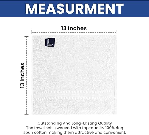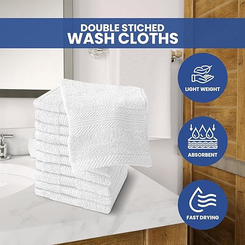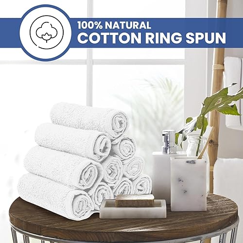 12-Pack Black Cotton Washcloths | 12x12 Inch Ring Spun Towels(White,13x13 Inches 24 Pack)