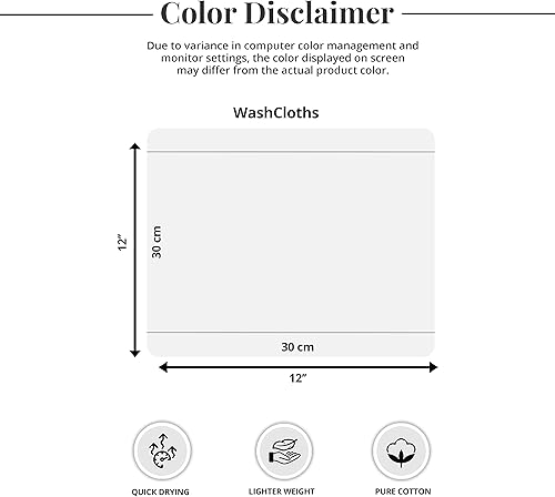 This set of 12 pack washcloths is sized at 12 x 12 inches