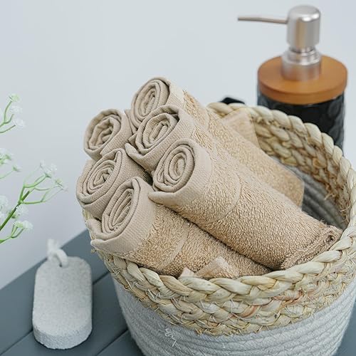 12 Pack Black Washcloths - Hotel Quality Face Towels(Beige,24 Pack)