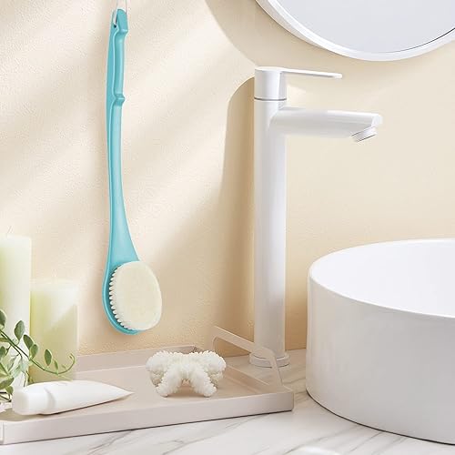 ELEGANT TASTE: The graceful arcs and exquisite workmanship make the shower brush look elegant and dignified, like a noble lady, becoming a bright embellishment in your bathroom. Each brush also comes with a strong no-residue hook, which is versatile and convenient for storage.