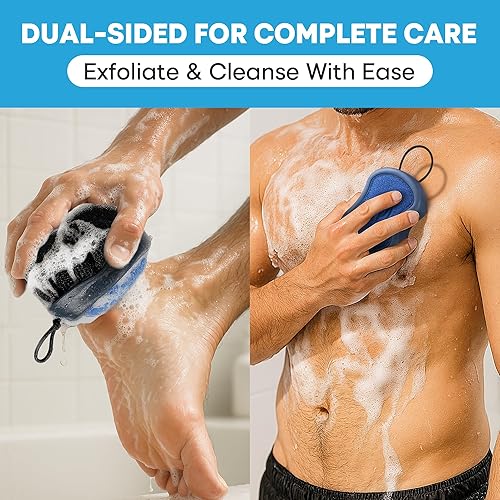 LONG-LASTING, HYGIENIC & EASY TO CLEAN: Made from BPA-free, medical-grade silicone, this exfoliate body scrubber, body buffer men, or exfoliating shower scrubber resists tearing, and odor buildup. Unlike mesh puffs, this body wash scrubber or mens shower loofah is built to last—making it an upgrade for any body scrub men routine and an exfoliating tool for body. Ideal for use as a men shower scrubber, mens scrubber for shower, or mens luffa body scrubber for a fresh finish.