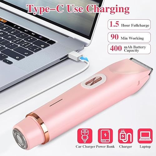 Rechargeable & Portable: Crafted from ABS material, our glowshave - electric 2 in 1 lady razor provides a gentle trim that reduces the risk of skin irritations. Painless hair removal razor is especially suitable for those with sensitive skin types, allowing for a comfortable and worry-free shaving experience. Equipped with fast charging via type-C technology, the womens electric Epilator is fully powered in just 2 hours, offering up to 90 minutes of cordless use. Its compact design makes shaver for women private area easy to slip into your purse or makeup bag, for travel-ready convenience