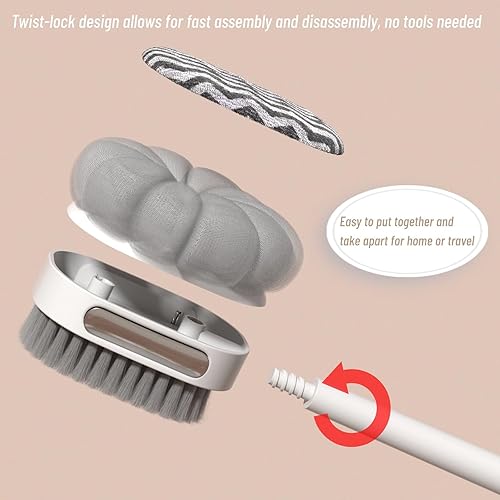 Detachable Handle – Long or Compact Use Switch between extended reach or a handheld brush. Designed for use in everyday shower routines at home or while traveling.