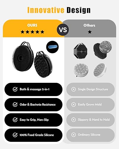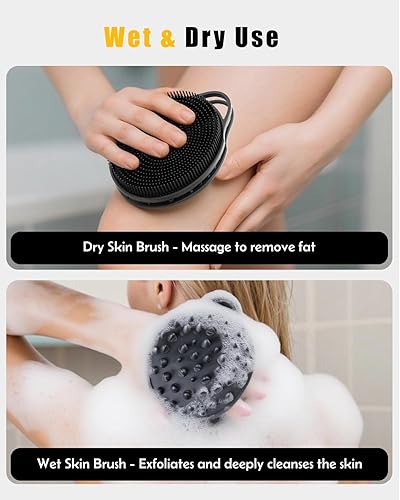 FACE & BODY SCRUBBER - Made with hypoallergenic, BPA-free silicone, this tool also serves as a silicone face scrubber, safe for sensitive skin and daily facial cleansing. Whether you're scrubbing your back, legs, or gently exfoliating your cheeks, it offers the versatility of multiple scrubbies for the body in one compact solution