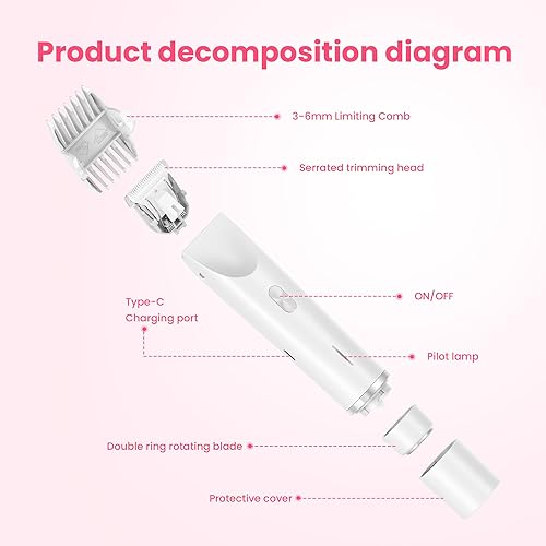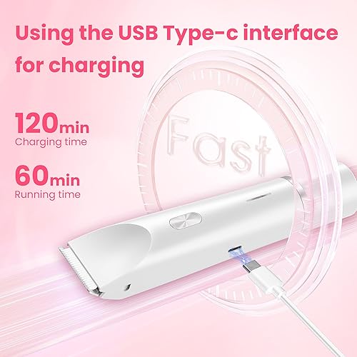 [Safe and painless care]:This bikini trimmer is equipped with a powerful motor and curved, hypoallergenic ceramic blades, suitable for all types of coarse, hard, long and short hair. It is safe, sharp, easy to trim, and does not clamp or pull hair, without discomfort such as skin pulling, irritation, injury, and pain. Provide you with a smooth and painless shaving experience