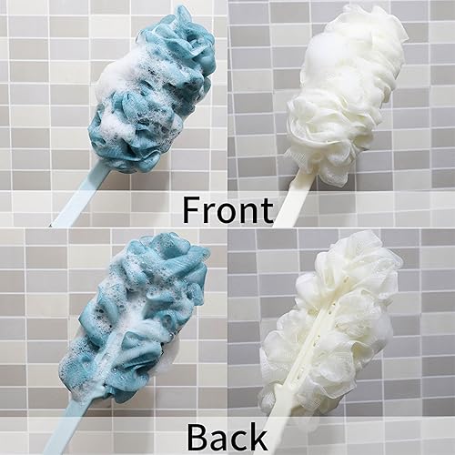 2-Pack Back Scrubber with Handle - Blue & White Loofah