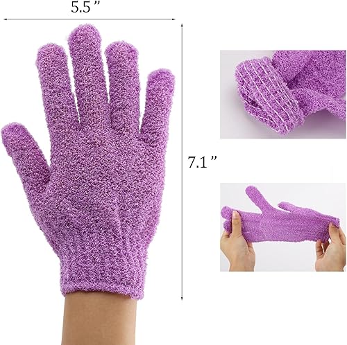 24 Pcs exfoliating shower gloves in 12 different colors. Pretty elastic and stretchy to fits most people's hands. And it will not leave any scratch marks on your body and makes a luxurious bathing experience