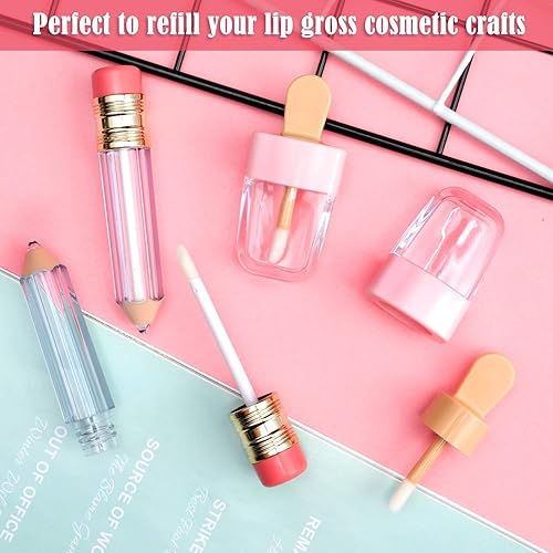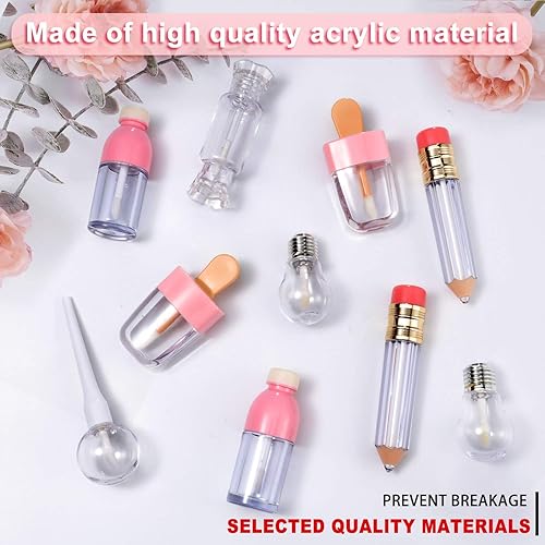 Adorable and novelty: the refillable lip balm containers feature in pencil shape, lollipop shape, ice cream shape, light bulb shape, candy shape and bottle shape, which are creative and interesting; Empty tubes with cap and brush tip, allow you to put them in your bag without worrying about leaking