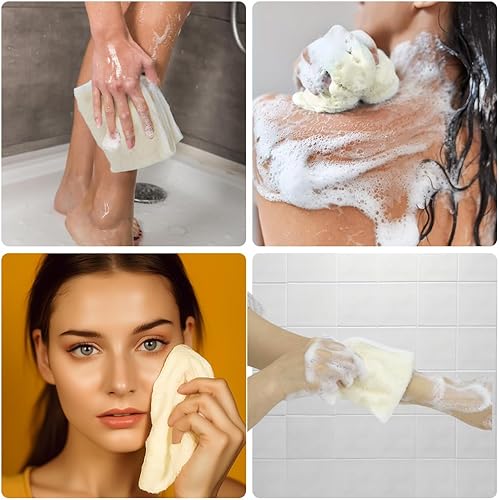 FACE CLOTHS FOR WASHING FACE ARE DURABLE: Exfoliating shower towel are easy to clean, hand washable or machine washable,reusable, body sponges for shower are designed to hang, easy to hang and dry, the edges of the facial wash cloths are sealed to prevent cracking, durable, body scrubber exfoliator,face wash scrubber is designed to be breathable to dry easily.