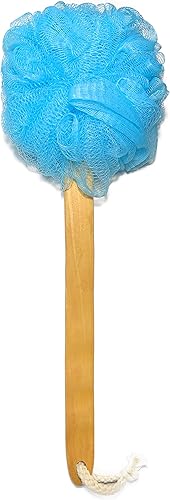 LONG HANDLE: Long wooden handle with radian is ergonomic and can help you clean any area. Perfect for scrubbing your back and hard-to-reach areas; measures 17-3/4" long and includes hanging loop for easy storage
