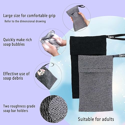 Effective Exfoliation: The exfoliating soap pouch features a texture that is both robust and gentle,Facilitating the removal of dead skin cells and impurities,Including dirt and oil,From pores,Recommended to use twice a week