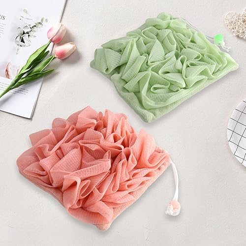 Drawstring Design: This bar of soap loofah adopts a unique drawstring design, which can firmly fix the soap in the middle to prevent the soap from loosening and slipping during use. This design of loofah cloth for bar soap is not only convenient to use, but also prolongs the service life of the soap and reduces waste.