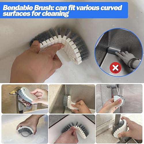 Bendable Brush Head for Perfect Fit: Our bathtub brushes have a unique bendable brush head design that fits perfectly on curved surfaces such as curved bathtubs and shower hoses. Compared with traditional straight brushes, this design can easily remove dirt and water stains in the recessed areas of curved surfaces, and say goodbye to hygienic dead ends such as the edge of the bathtub and the crevices of the shower, which greatly improves the cleaning efficiency and cleanliness, and makes your cleaning work much easier.