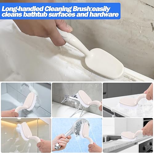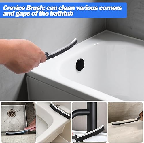 Deep Cleaning, no Dead Ends: Our bathtub cleaner kit provides a complete set of professional cleaning tools. The curved brush penetrates deep into the bathtub wall to remove dirt from dead corners; the handle brush cleans the bathtub surface and hardware with ease and effortless operation; the crevice brush accurately responds to the edges of seams and removes stubborn stains thoroughly, ensuring that every corner of the bathtub is as clean as new.