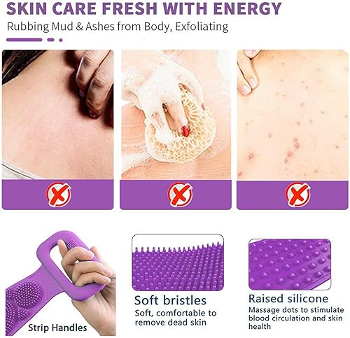 EASY TO USE - The silicon back scrubber come with Two Handles for You Easily Grip the Scrubber and Easily Hang for Quickly Dry. You can put on body wash on it and move it across the back in both directions easily and effectively.