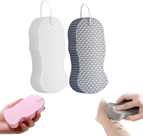 【Perfect for All Ages】This set includes four exfoliating sponges in pink, blue, gray, and white, making it perfect for use by all family members—men, women, and children alike. The convenient lanyard allows for easy hanging and storage.
