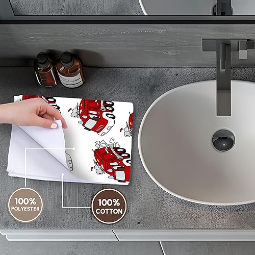 3D Rose Red Fire Truck Pattern Hand Towel 15x22