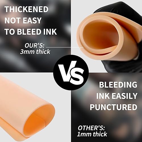 SKIN-LIKE TOUCH FEELING - Tattooing practice skin was made from quality silicone. Come with great ductility and own a better skin-like touch feeling. The thick fake skin can be wrapped around the body surface at will. You can use tattoo skin to practice line work, shading, and other tattooing techniques.