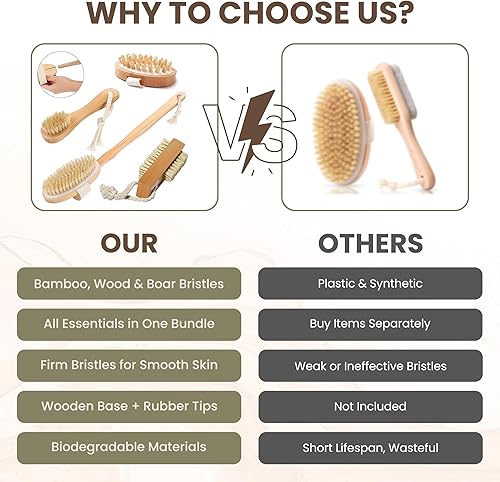 4-in-1 Bamboo Body Scrubber & Dry Brush for Lymphatic Drainage