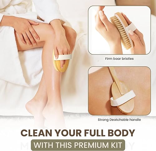 Full-Body Exfoliation & Improved Circulation - The Dry Body Bath Brush with natural boar bristles and long detachable handle helps exfoliate dead skin when shower, unclog pores, and stimulate blood flow. It promotes glowing, healthier skin and supports lymphatic drainage.