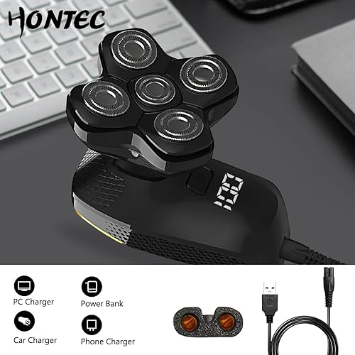 ·【5 Flexible Shaver Heads for Close Shave】- 5 precision & close rotary blade heads of the razor adapts to the contour of your head and allows reaching more hair with every pass, resulting in smooth and close shave. An good choice for mens bald head shaving, ensures gentle close shave of the all areas of head and neck in few minutes.For a better bald look, please use the hair clipper first to trim the hair to less than 5 mm then use the head shaver.