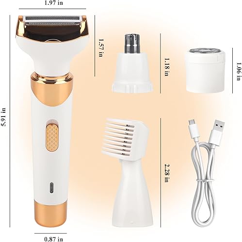 Multi-Head Shaver: The Beanify Women's Electric Shaver is equipped with four versatile heads that can handle shaving, eyebrow shaping, nose shaving, and hair trimming with ease. It effectively removes unwanted hair from the face, arms, legs, body, bikini line, and underarms, so you can look confident and beautiful without worrying about annoying details
