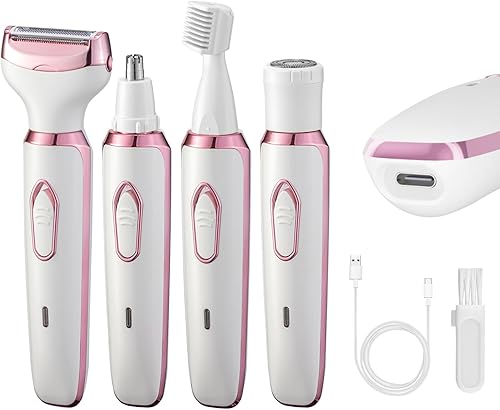 4-in-1 Electric Razor for Women-This Bikini Trimmer kit comes with 4 replaceable heads with different functions. 1 bikini trimmer, 1 nose hair trimmer, 1 short hair trimmer, 1eyebrow trimmer. Applicable to the body, face, underarms, bikini, eyebrow, nose etc.