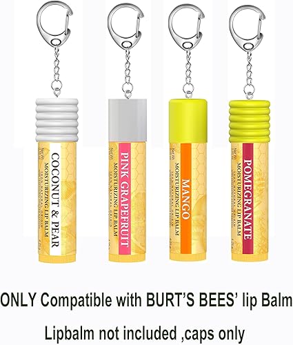 Stylish Accessory: Keychain cap Compatible with burt's bees lip balm, adding a touch of flair to your lip care routine. 4 PCS/ SET