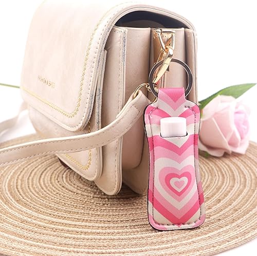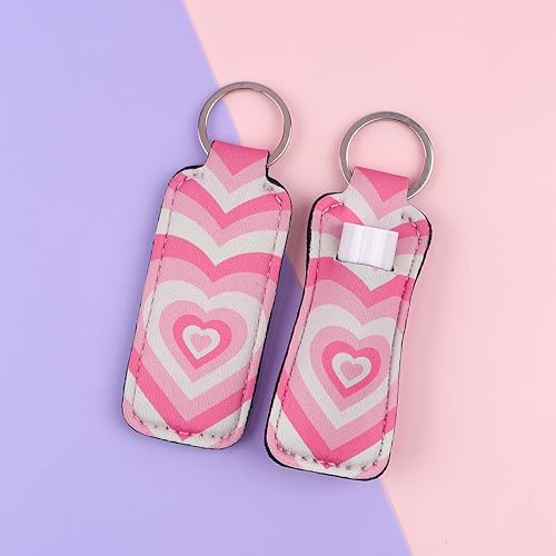 4-Pack Lip Balm Holder Keychain | Lipstick Sleeves for Women & Girls(Pinkheart)