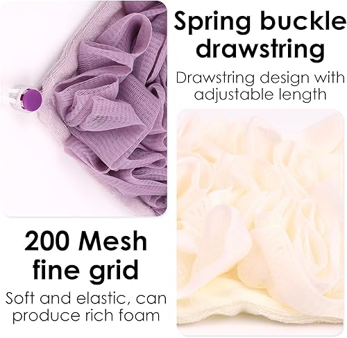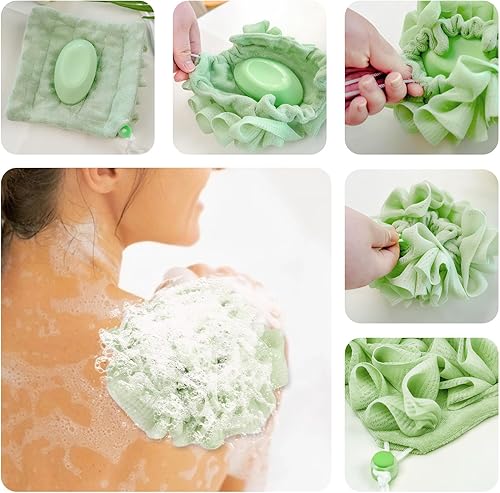 4 Pack Washable Loofah Set: Upgrade your bathing routine with 4 durable loofah washcloths (beige, green, purple, pink)! This washcloth loofah combo gently exfoliates while securely holding your favorite bar soap. Perfect for daily use, these reusable sponges leave skin soft and smooth. Ideal for all skin types, including sensitive skin