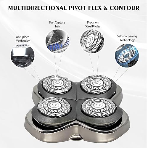 [Premium Replacement Blade] Durable stainless steel blades ensure a sharp, long-lasting experience. The spring-loaded blades also minimize skin irritation. The shaver replacement heads for skull keep hair clippings out of the transmission for a reliable shaver blade; it's also designed to capture hair shavings efficiently to reduce mess.