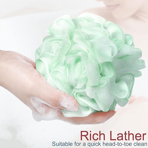 Meeting Family Needs: the package contains 48 pieces of shower puffs in 4 colors, 12 pieces in each color, and each shower scrubber for body weighs about 1.76 oz/ 50g, soft and dense, comfortable to use, enough quantities to satisfy your daily using and replacing needs, ideal for men and women