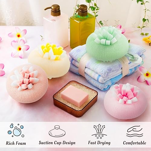 4PCS 2-in-1 Suction Cup Bath Ball & Exfoliating Loofah