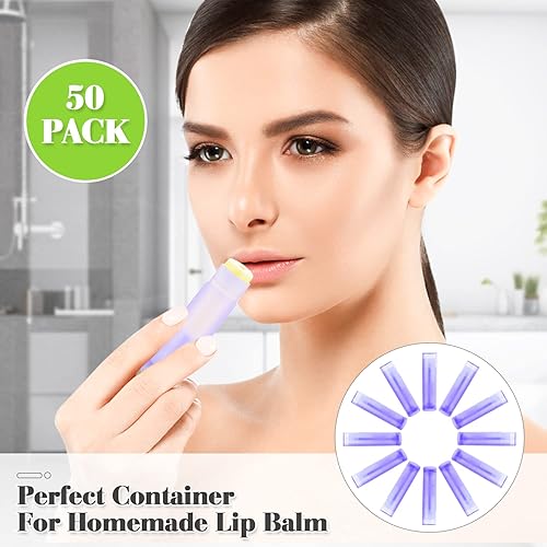 【PACKAGE INCLUDED】50 Purple empty lip balm tubes,Each tube is 5.5ml (3/16 oz),perfect size for lip balm,hold enough amount of lipstick,sample tubes vials to meet your needs when travelling or on business trips.
