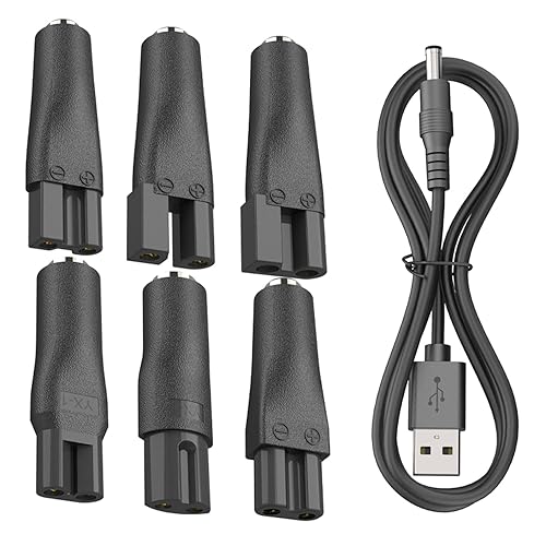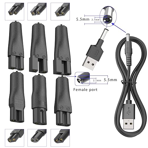 ✅【 Great Value Package 】:You will get 6 charging heads of different shapes are suitable for various electric clipper interfaces, DC 5V USB to 5.5x2.1mm Charging Cable *1 With this 7 pieces adapter charger set, you can easily charge a wide range of 5V devices when traveling or at home.