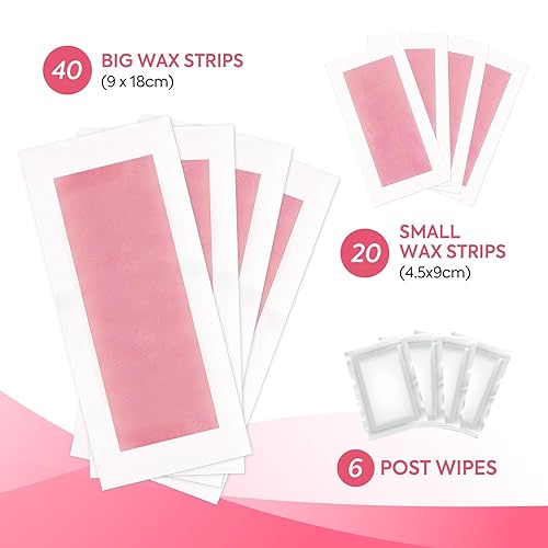 60 Wax Strips: 40 Body + 20 Facial Hair Removal for Women