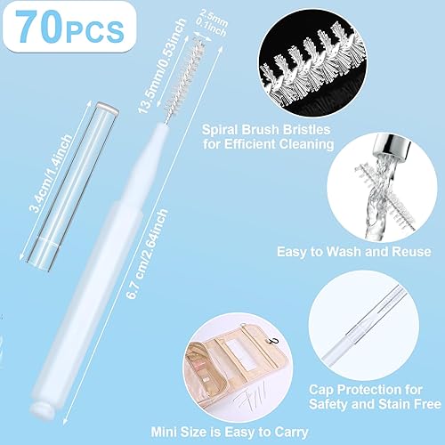Massive 70-Piece Set: Get 70 premium shower head cleaning brushes and a convenient storage box. Perfect for tackling multiple cleaning tasks at once, whether for your shower, bathroom, or even small electronics. The compact 2.64-inch design is easy to store and take on the go.