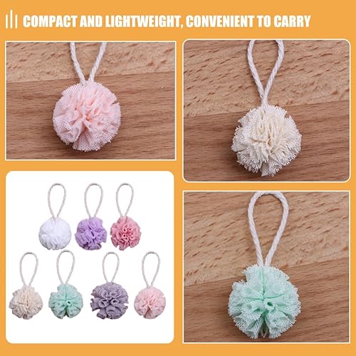 7pcs Mini Mesh Bath Sponges & Loofah Puffs for Dollhouse