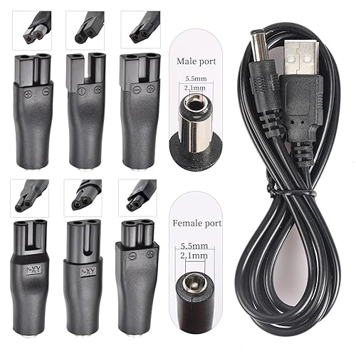 【7-piece Set】: 6 charging heads of different shapes are suitable for various electric clipper interfaces, DC 5V USB .