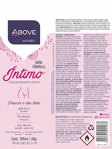 Pure Protection: Experience confidence without compromise. ABOVE's Intimo deodorant spray is alcohol and benzene-free, offering effective odor protection with a gentle touch. Trust in a formula that cares for your skin while keeping you fresh.