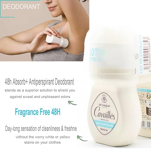 Designed for daily use by Cavailles Absorb+ 48h Antiperspirant Fragrance-Free Deodorant also incorporates hydrating agents that tenderly care for your skin, preventing any feelings of tightness or irritation. Experience the confidence and comfort that come with well-nourished, pleasantly fragrant, and stain-free days.