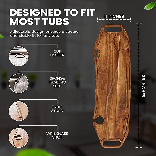 ✅ 【MAKE SURE TO MEASURE YOUR TUB】35 inches long, 1.2 inches thickened board bathtub tray, it is fit for free-standing tub, BUT NOT fit for standard tub against a wall. Please measure the tub size before purchasing. Precise Dimensions: Measuring 35 inches in length, 10 inches in width, and 1.5 inches in height, providing ample space for various items during your bath.