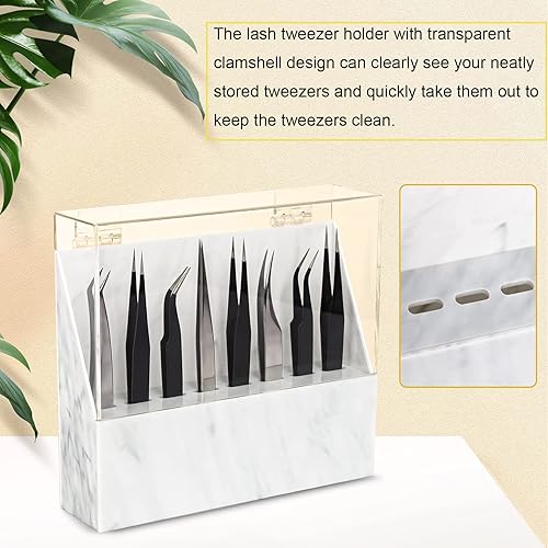Sturdy Lash Tweezer Case:The clamshell integrated tweezers storage box is decorated with high-quality acrylic and marble patterns, no peculiar smell,sturdy.This kind of material can keep in good shape for a very long time for daily use.
