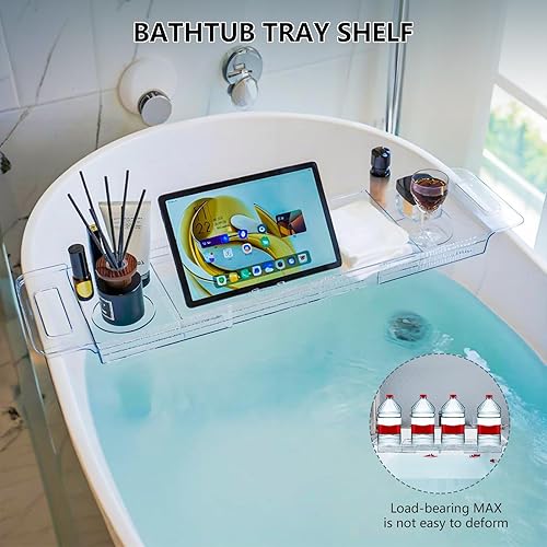 Adjustable Bathtub Tray - Transparent Bath Caddy with Non-Slip Pads