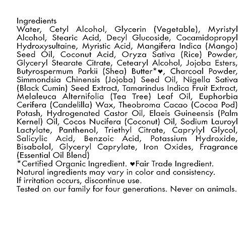Made with African Black Soap, Bamboo Charcoal and Tea Tree Oil